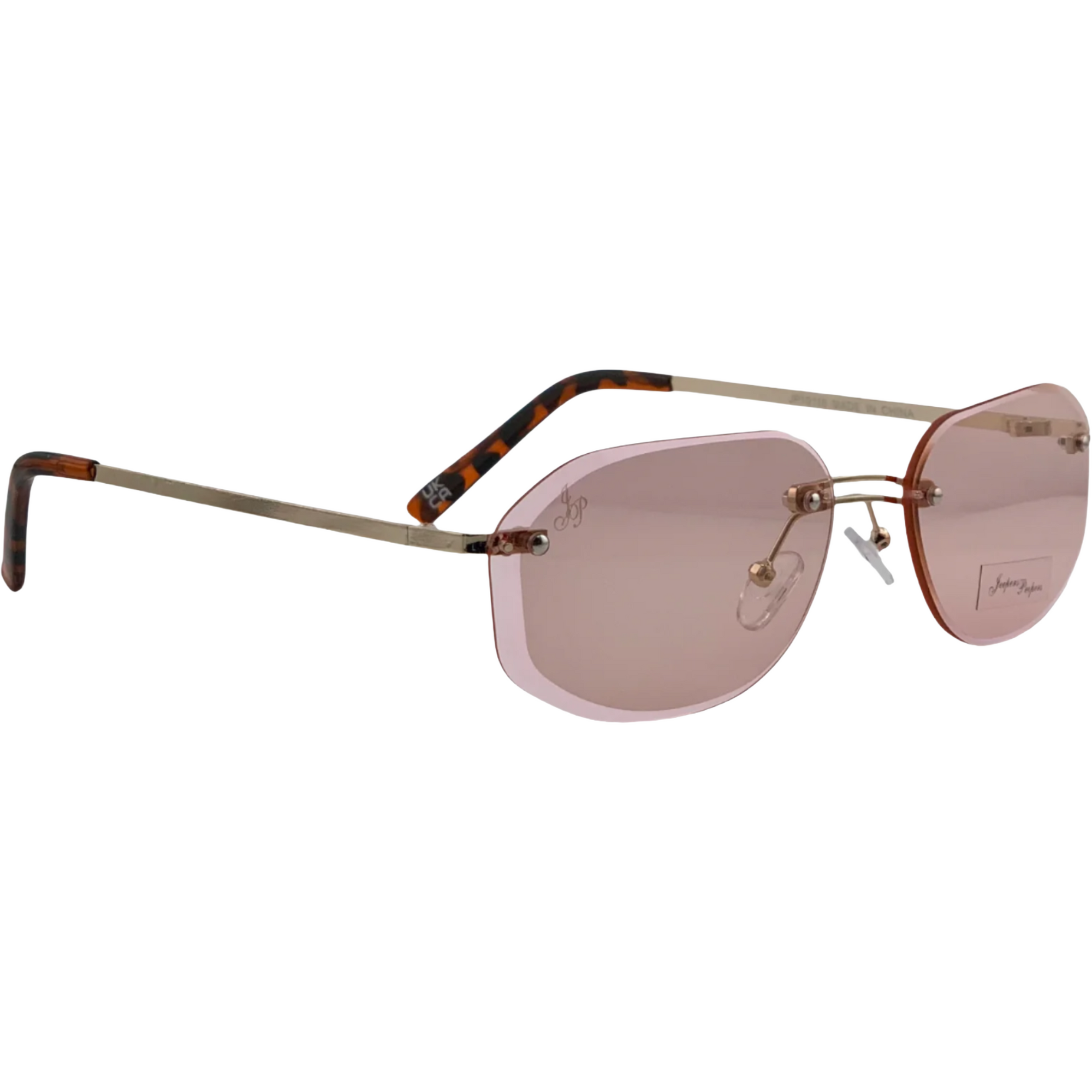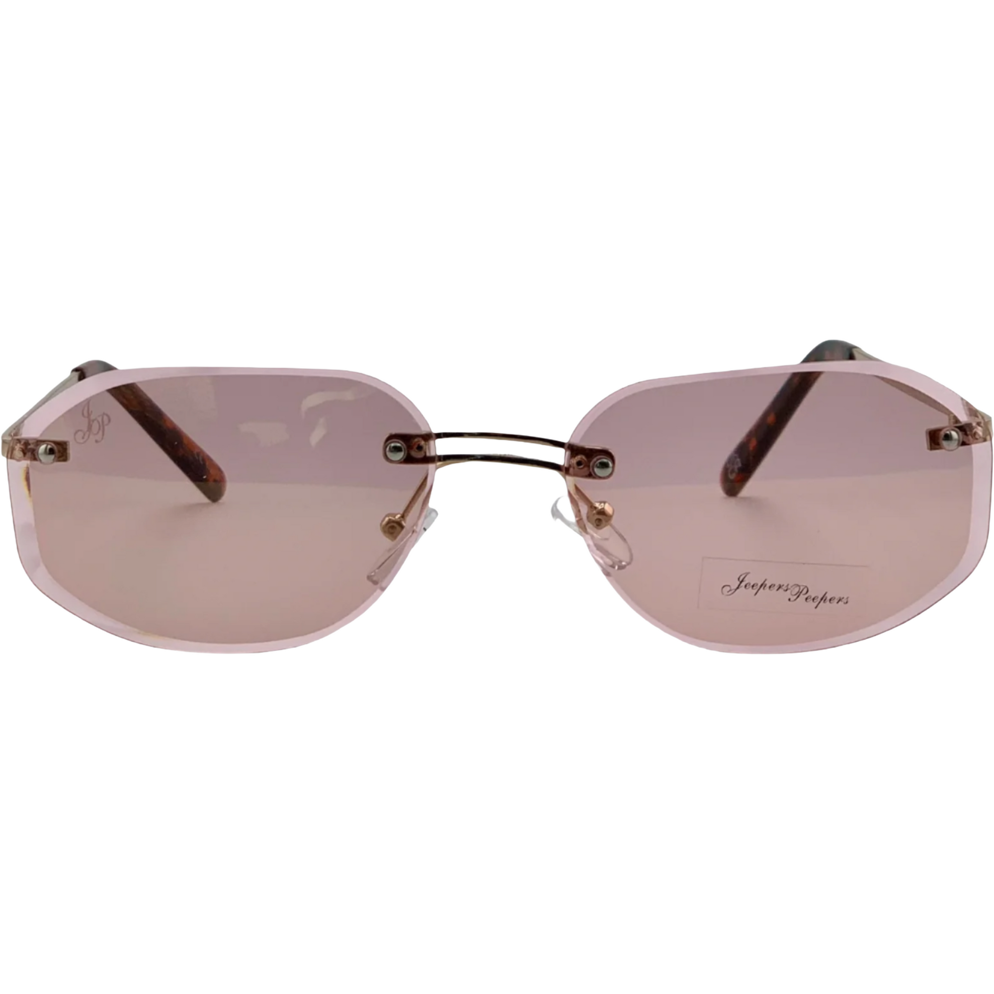 GOLD OVAL RIMLESS FRAME WITH PINK LENSES